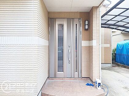 鮮やかな色合いの玄関が外観に映える、個性的な戸建です。ドアや窓の配置がバランスよく、シンプルながらも目を引くデザインで、家の雰囲気を引き締めています。周囲との調和も大切にされています。