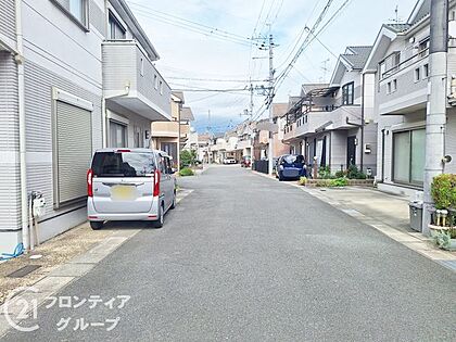 前面道路は見通しもよく、車の出入りや歩行も安心な住環境。交通量が少なめで静かな住まいをお探しの方にもぴったりです。お子様の通学やお散歩など、暮らしの中で安心を感じられる立地が魅力となっています。
