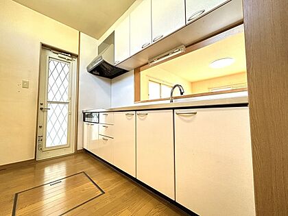 収納豊富なキッチンです!勝手口があり、ドアを開けて入ってくる風を感じながらお料理ができます♪