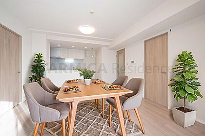 やわらかな木のぬくもりが心地よいLDK。床暖房を設備されているので、寒い季節も快適に過ごせますね。
