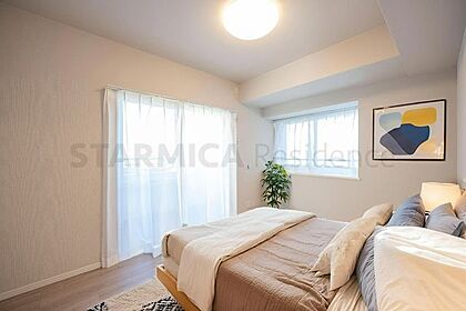2面採光の洋室は風通しもよく、気持ちよく過ごせそう。※家具等はCGによるインテリアイメージです。家具の設置サイズを保証するものではなく、TV配線には配慮しておりません。