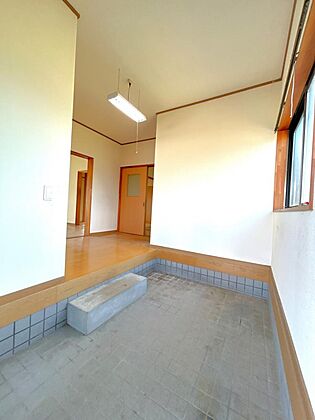 【リフォーム中】玄関の内側の写真です。壁天井はクロスを張り替え、床は新しいタイルを貼っていきます。シューズBOXを新設するので玄関が靴であふれることはなくなります。