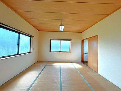【リフォーム中】2階西側の8帖和室です。2方向に窓があるので風通しも良いですね。床はフローリング張りに変更し、壁天井のクロスを張り替え洋室への間取変更をおこないます。