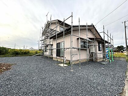 【リフォーム中】外観南側。広々駐車場としてお使いいただけます。外壁塗装、駐車場拡張工事をおこないます。