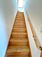 【リフォーム中】1階から見た階段です。手すりがついているので小さなお子様や高齢の方にも安心していただけますね。壁天井のクロスを張り替え、階段はクリーニングを行います。