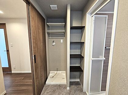 洗面所も広く、下着やタオル類を余裕で収納できます。