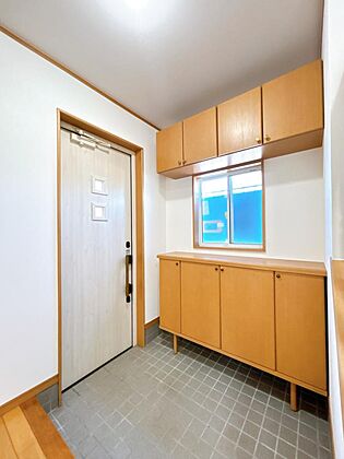 【リフォーム済】玄関内部写真です。シューズボックスはクリーニングを行いました。ご家族皆様の靴などを収納する十分な大きさがあります。