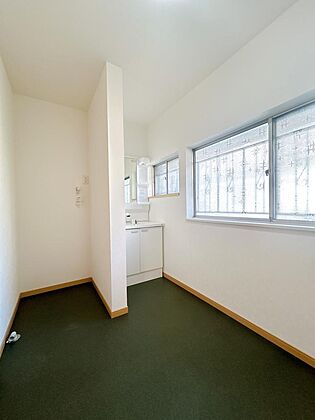 【リフォーム済】脱衣洗面の写真になります。洗面台は新しいものを新設いたしました。洗面台の横には洗濯機を置くスペースがございます。