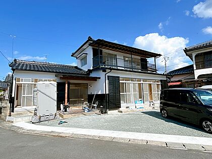 【リフォーム済】外観のお写真になります。南側には駐車場がついております。写真では軽自動車3台停めております。広々とした駐車場ですので、駐車は楽々停めることが出来ます。