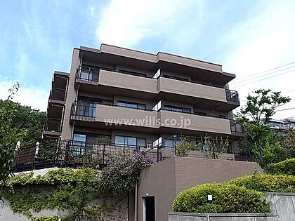 リーベスト御影B棟の外観(南西側から)です。阪急御影駅からバス乗車約5分、徒歩4分にあるマンション。高台の立地で緑豊かな住環境が魅力のエリア。なお、エレベーターはありません。