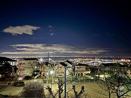 •  バルコニーからの眺め(南東方向)です。神戸の夜景を楽しめます。[2024年1月27日撮影]