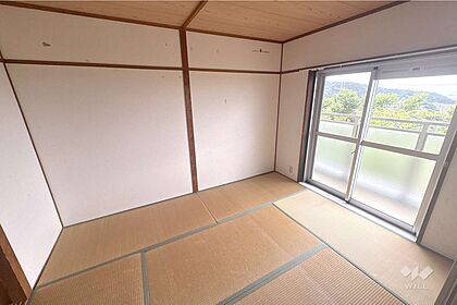 •  和室6帖です。バルコニーに面しており、採光・通風良好。隣接する洋室からアクセスできます。