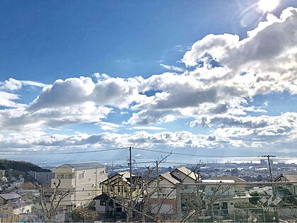 •  バルコニーからの眺め(南東方向)です。晴れた日には遠くまで見渡すことができますよ。[2018年12月14日撮影]
