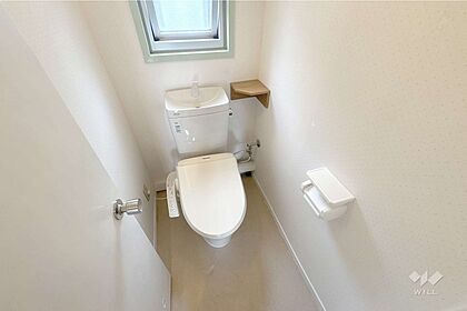 •  トイレです。洗浄便座付きで、換気窓があるのもうれしいポイント。