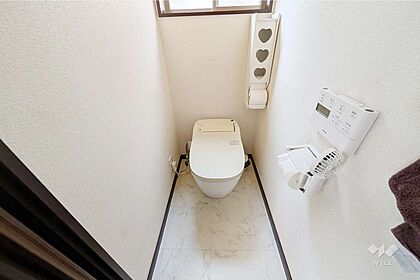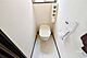 トイレです。タンクレスで掃除がしやすいシンプルな造りになっています。うれしい洗浄便座付き。[2025年8月24日撮影]