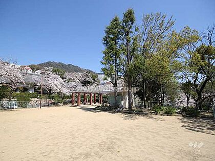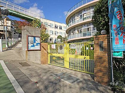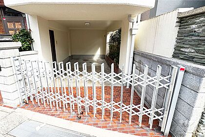 物件の外観(北西側から)です。阪急六甲駅から徒歩12分にある一戸建て。周辺は一戸建てや集合住宅が立ち並ぶ閑静な住宅地。東側に六甲川が流れています。[2025年6月27日撮影]