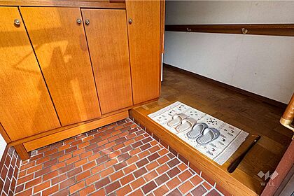 玄関ホールです。使いやすい高さのシューズボックスが設置されています。[2025年6月27日撮影]