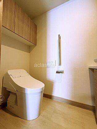 ウォシュレット機能付きの節水トイレです。手洗いカウンター付きです。