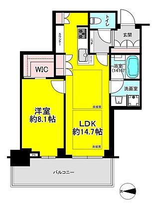 約8.1帖の洋室です。ウォークインクローゼットがあります。