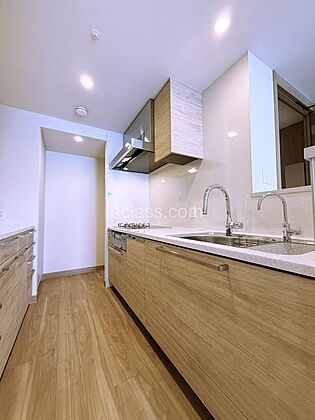 広々としたキッチンです。造作棚付きで収納豊富です。