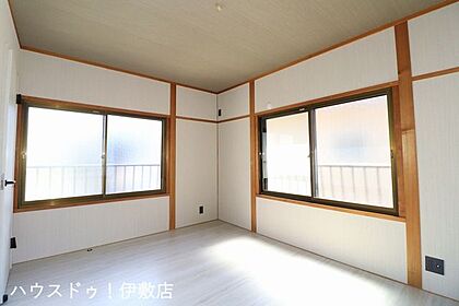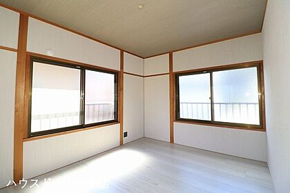 【2F洋室6帖】二面に窓があるため一日中安定した明るさが保てます。腰高窓なので家具の配置もしやすく模様替えも楽しめそうです。