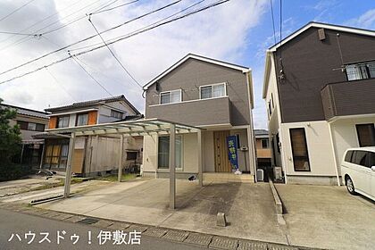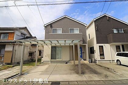 【外観写真】カーポート2台付!駐車場普通車2台、軽1台可能です!南向き陽当たり良好!
