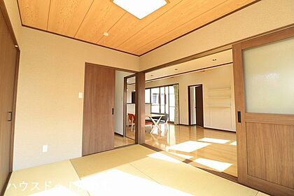 【和室6帖】玄関側とリビング側の2方向に出入口があり、客間としても使用可能です