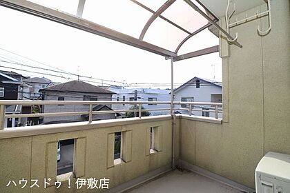 【バルコニー】屋根付きのバルコニーで急な雨にも安心です