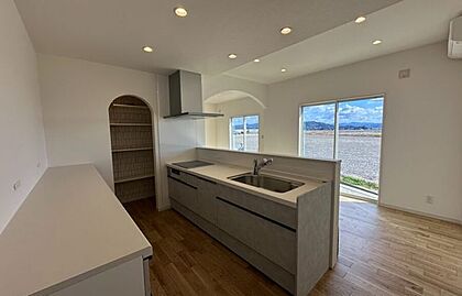 アーチが施されたかわいい内装と、落ち着いたアクセントカラーで 洗練された印象の新築一戸建てです! 完成済なので内覧可能♪ 空の抜けた気持ちの良い立地です。 LDK18.55帖、おかえり手洗いがあったり 収納が充実していたりと嬉しいポイントがたくさん☆ お気軽にお問い合わせください♪ |