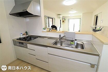 【キッチン】家事をしながらでも家族と会話の弾む対面式のシステムキッチン!