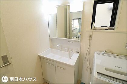 【洗面台】3面鏡の洗面台は収納が豊富です♪小窓もあり湿気の多い水場でも自然換気ができ衛生的です♪
