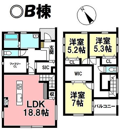 広々18.8帖リビングで家族やお友達とパーティー等にぎやかに過ごせます。2階は3つ部屋があってプライベートの時間を過ごせて快適です。
