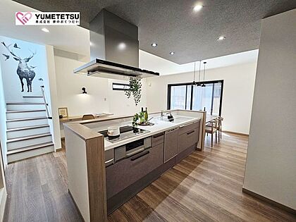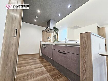 調理器具や調味料等、大容量の≪収納力≫を備えたシステムキッチンです。収納がスライド開閉が可能、カップボードもついているので食器などの収納もできます。家事をしながら家族とコミュニケーションが楽しめる設計