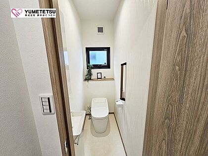トイレは1階と2階にあるので、朝の混雑時に大活躍!バタバタ忙しい朝の身支度もスムーズに進みます。小窓がついて明るく収納付で便利です。お掃除もラクラクなウォシュレット一体型トイレを採用しています。