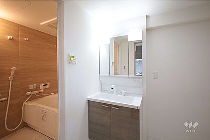 洗面室[2025年9月18日撮影]ゆとりある洗面スペースです!洗面室がキッチンと比較的近くに配置されており、家事がしやすい造り!
