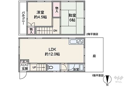 間取り 2LDK 構造及び階数 木造 2階建て(連棟式)