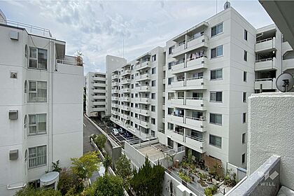 S棟(南西側から)。阪急千里線「南千里」駅徒歩12分。1974年2月築。総戸数160戸の分譲マンションです。