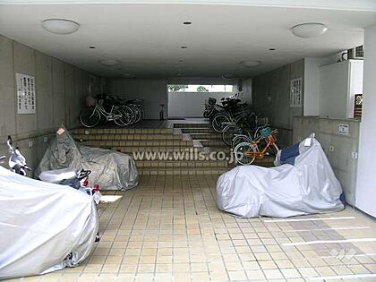 駐輪場。阪急千里線「南千里」駅徒歩12分。1974年2月築。総戸数160戸の分譲マンションです。