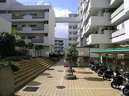 敷地内の駐車場(平面式)。阪急千里線「南千里」駅徒歩12分。1974年2月築。総戸数160戸の分譲マンションです。
