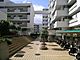 敷地内のタイル敷きの広場。阪急千里線「南千里」駅徒歩12分。1974年2月築。総戸数160戸の分譲マンションです。