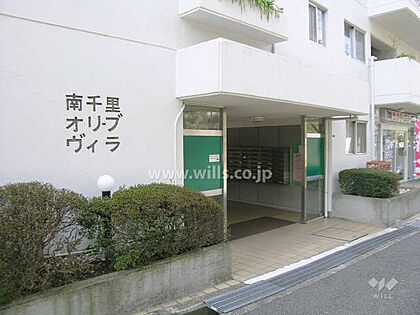 エントランス。阪急千里線「南千里」駅徒歩12分。1974年2月築。総戸数160戸の分譲マンションです。