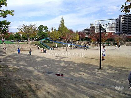 敷地内の公園。阪急宝塚線「豊中」駅徒歩18分。1977年3月築。総戸数163戸の分譲マンションです。2025年7月リフォーム完成済み。