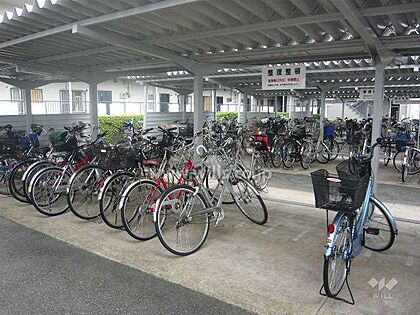 駐輪場。 屋根が付いておりますので、雨の日でも自転車が濡れる心配がございません。
