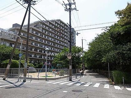 敷地の西側は緑地に面しています。周辺は緑豊かな住宅地。阪急神戸線「園田」駅から徒歩約15分です。