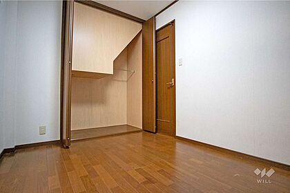 1階4帖洋室は2面採光で陽当たり・風通し良好。玄関近くで、アウトドア用品などの収納部屋としても便利です。