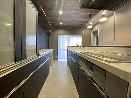 キッチン背面には収納力のあるカップボード付き◎