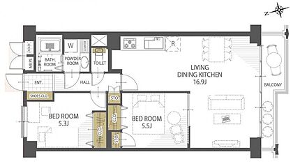 間取り 2LDK 専有面積 60.77m2(壁芯)