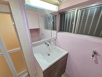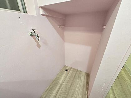 洗濯機を配置しても十分なスペースを確保した設計の洗面室!