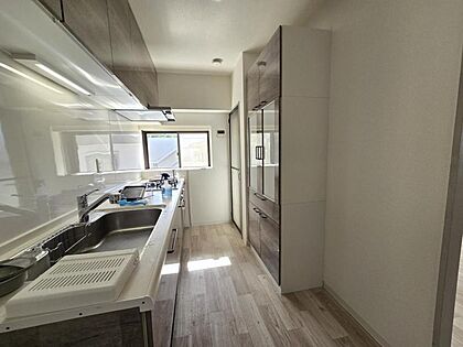 キッチンとおそろいのカップボード♪収納力があり、使い勝手良く仕上げられたキッチンスペースでお料理も捗りそうです!