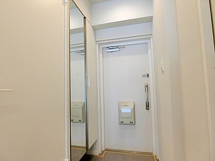 玄関周辺には豊富な収納スペース付きです。便利な姿見もございます。
